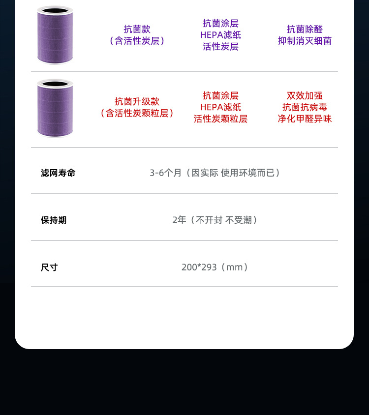 適配小米空氣凈化器濾芯2s/1/2/3 代pro家用除甲醛霧霾抗菌過(guò)濾網(wǎng)